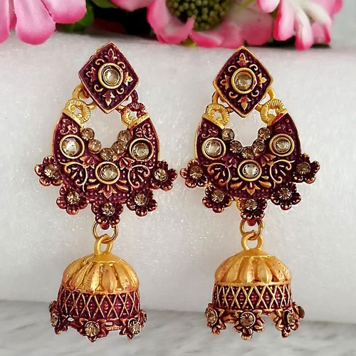 Woma Gold Plated Maroon Dangler Meenakari Earrings 3